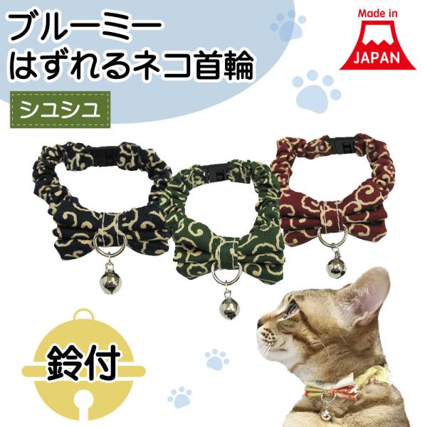 手作りの猫用首輪 猫 首輪 リボンとシュシュ 営業 安全 猫雑貨招福 鈴