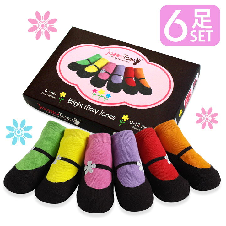 楽天市場 ジャージートー Jazzy Toes 出産祝いにオススメ 赤ちゃん用靴下6足セット ブライトメリージェーン 出産祝い ラッピング無料 ベビー ソックス 赤ちゃん 靴下 Jazzy Toes ギフト 3000円台 孫 誕生日 女の子 米国ベビー用品 バーブーベビー